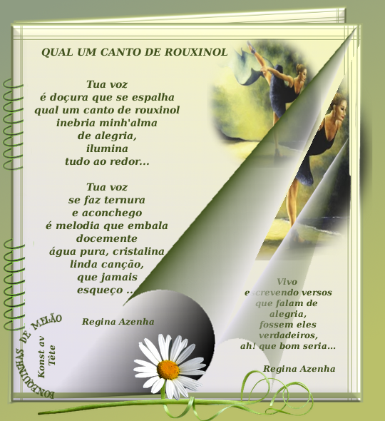 Amo-te tanto... tanto... Que sinto medo ante a imensidão do meu amor. Nasci num canto do mundo para vir te amar. Apesar do tempo e da distância, O primeiro grito da minha alma Foi uma procura inconsciente por ti...